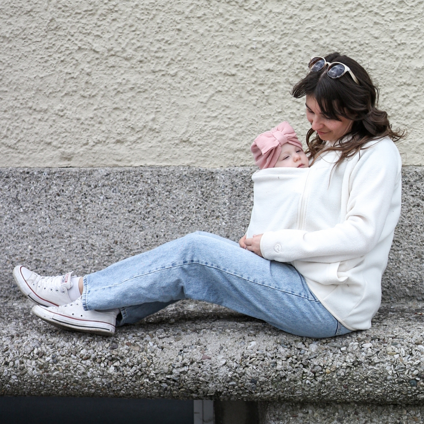 Die Mamalila Fleece-Jacke Basel ist ein toller Alltagsbegleiter. Egal ob mit, oder ohne Tragling.