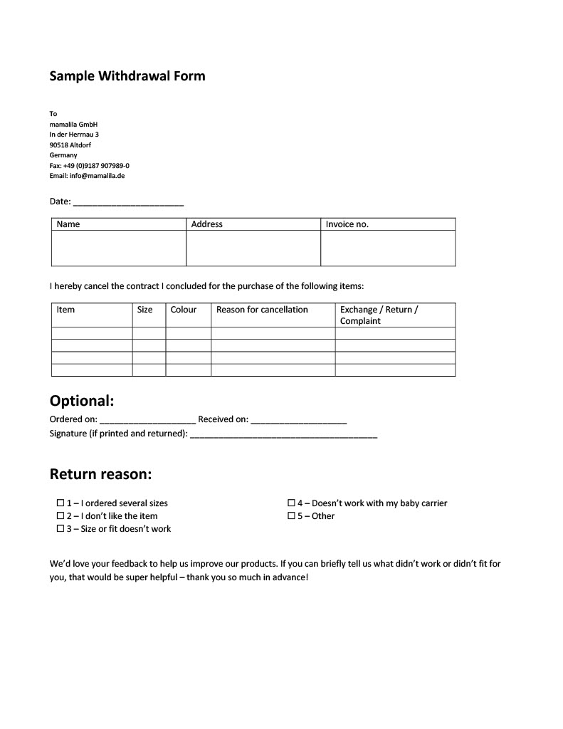 If you do not wish to keep the goods you have ordered, you can return them in accordance with our return policy - at https://mamalila.de/en/good-to-know/returns/ you will find instructions on how to do this.
