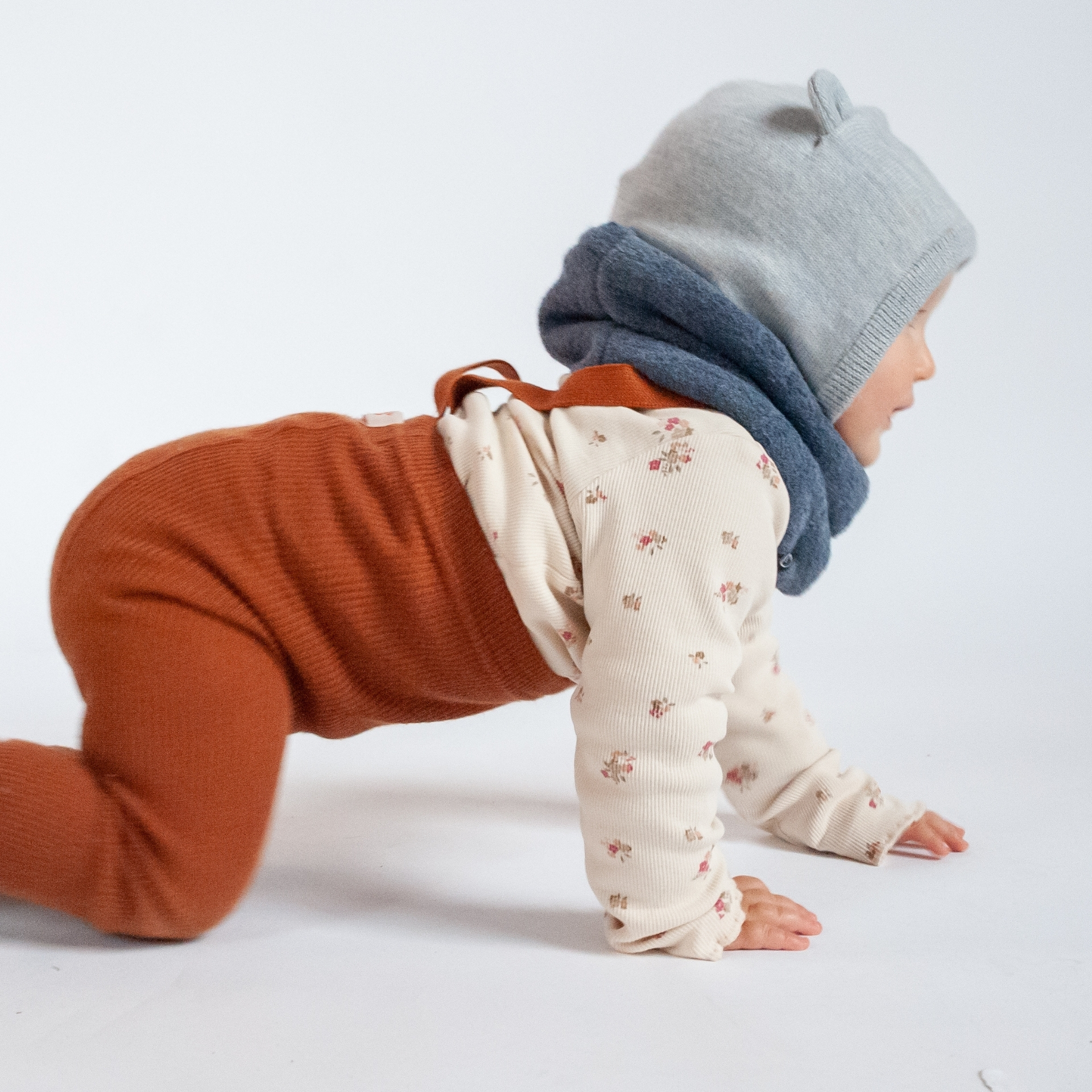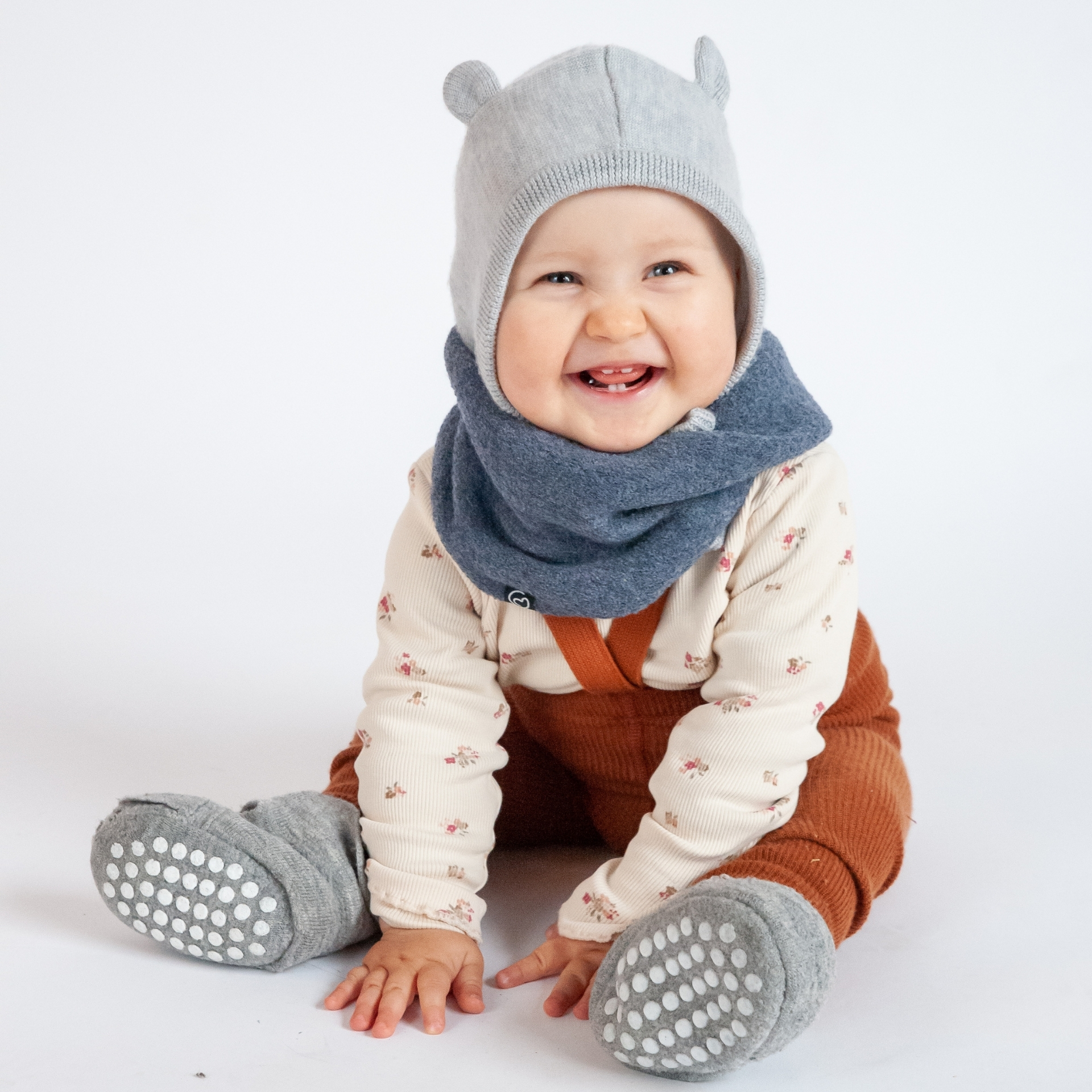 Thanks to the clever twist and no annoying seams, the loop scarf for children will fit from the age of 1 snugly around the neck. It has a particularly high neck, and at the same time a lower neckline at the front so that the loop does not slip over the face. Suitable for children from 1-3 years.